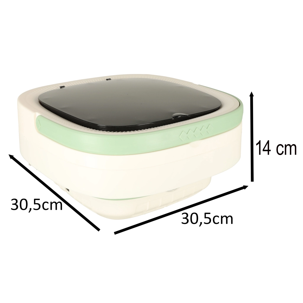 Avec cette machine à laver portable, lavez t-shirts, sous-vêtements ou vêtements pour enfants où que vous soyez – il suffit d’eau et d’une alimentation 12 V. Le corps pliant en silicone économise de la place, il se glisse sans problème dans une valise ou un sac à dos, et la poignée pratique assure un transport confortable.