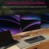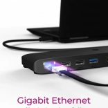 Cette station d’accueil mobile offre une flexibilité maximale : à partir d’un seul port USB‑C, elle crée un véritable centre de travail avec la possibilité de connecter plusieurs moniteurs, des périphériques et le réseau. Grâce à son format fin et léger, elle se glisse facilement dans un sac et se met en service en un instant – pour une présentation, une réunion en ligne ou à votre bureau à domicile.