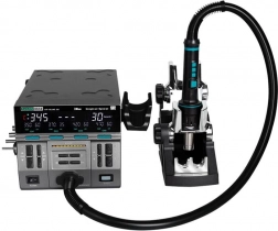 La Sugon 8650 est une station de soudage à air chaud moderne, équipée de trois modes de fonctionnement permettant de s’adapter à diverses tâches de soudage. Conçue ergonomiquement pour faciliter le travail, cette station offre un affichage numérique avec réglage fin des paramètres.