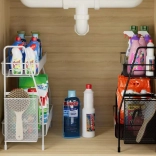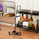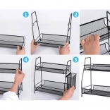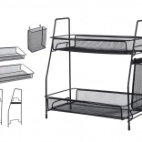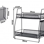 Gardez votre plan de travail et votre salle de bain bien ordonnés grâce à ce pratique organisateur à deux niveaux en maille métallique. Il offre deux étagères spacieuses, un panier latéral pour couverts ou brosses et une structure stable dans une élégante couleur noire. Son design ouvert assure une excellente visibilité et une circulation de l’air, pour que épices, cosmétiques et petits objets soient toujours à portée de main.