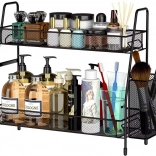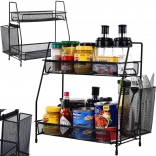 Organisateur de cuisine et de salle de bain en métal à deux niveaux avec panier latéral – noir