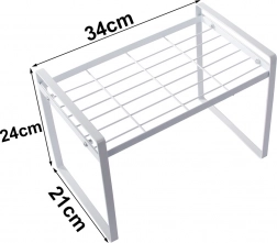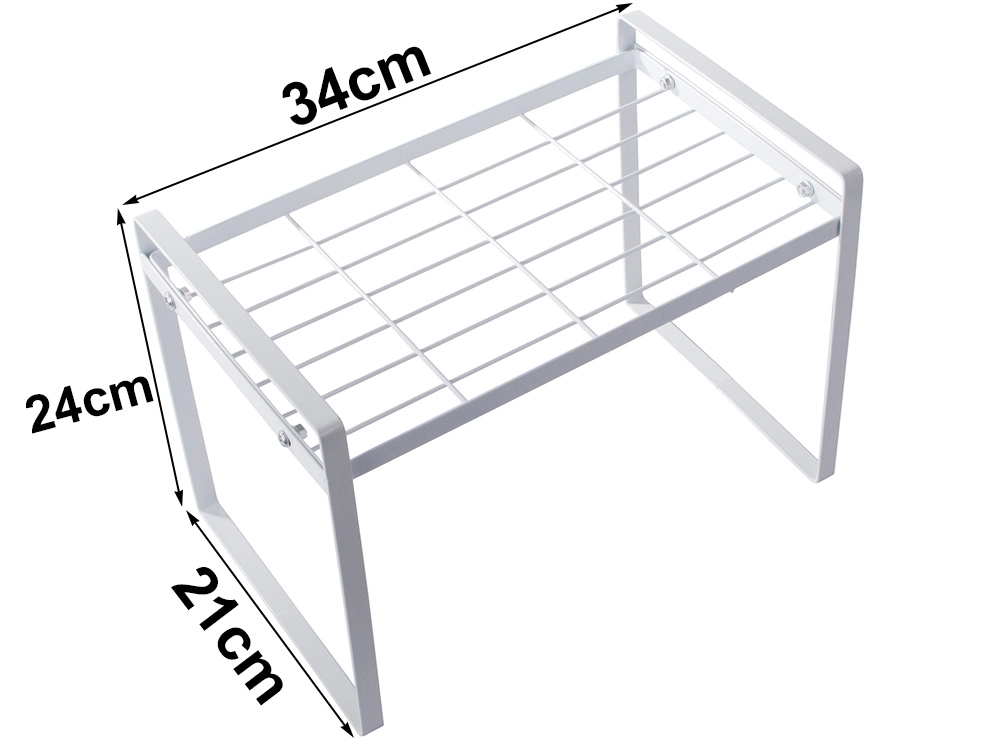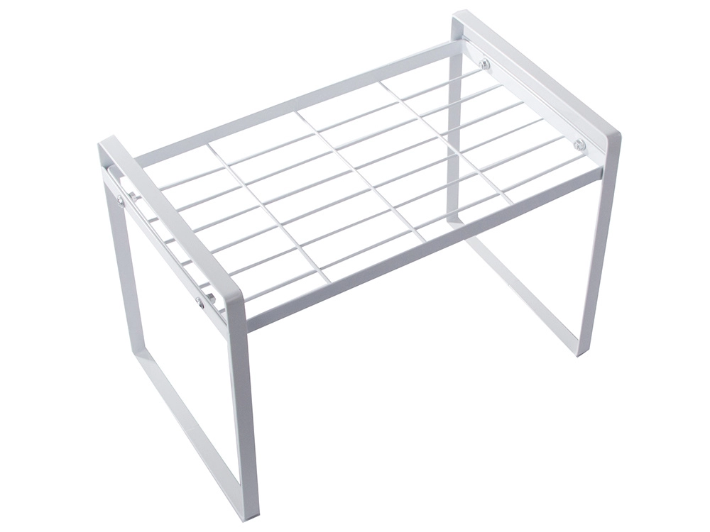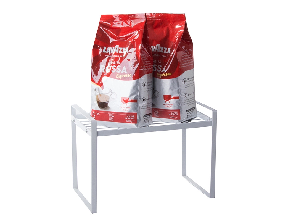Ordonnez votre cuisine en un rien de temps avec cet organisateur métallique stable. Grâce à sa structure surélevée, vous créez un niveau de rangement supplémentaire au-dessus du plan de travail, vous exploitez aussi l’espace sous l’étagère et gardez tout bien visible à portée de main. La structure résistante en métal laqué assure stabilité et longue durée de vie dans la cuisine, le garde-manger comme dans la salle de bain.