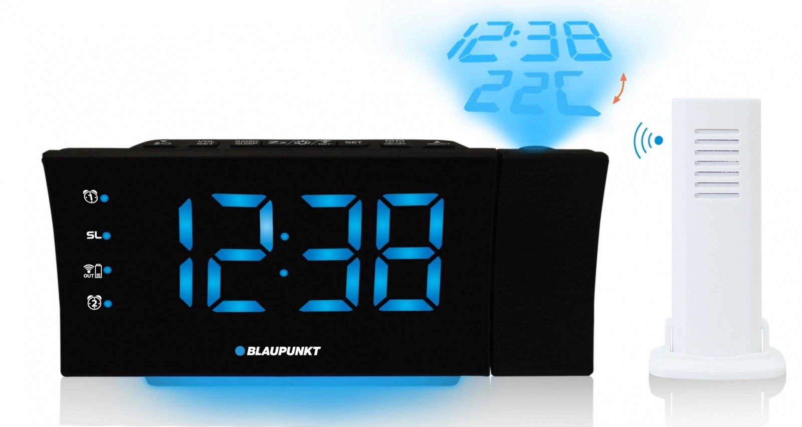 Réveillez-vous chaque jour avec confort et style grâce au radio-réveil BLAUPUNKT avec projecteur et charge USB. Il offre un radio FM avec mémoire de 20 stations, une double alarme, une fonction répétition (5–60 min) et un grand écran LED avec variateur. Grâce à la projection de l’heure et de la température extérieure au plafond ou sur le mur et au capteur de température sans fil, tout est sous vos yeux. Un port USB pratique pour charger votre téléphone vous assure l’énergie pour bien commencer la journée.