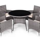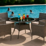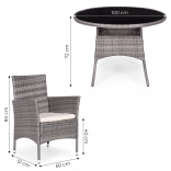 L'ensemble est fabriqué en polyrotin robuste, résistant aux rayons du soleil, à l'humidité et aux variations de température. De plus, sa surface est facile à nettoyer – il suffit de l'essuyer avec un chiffon humide.