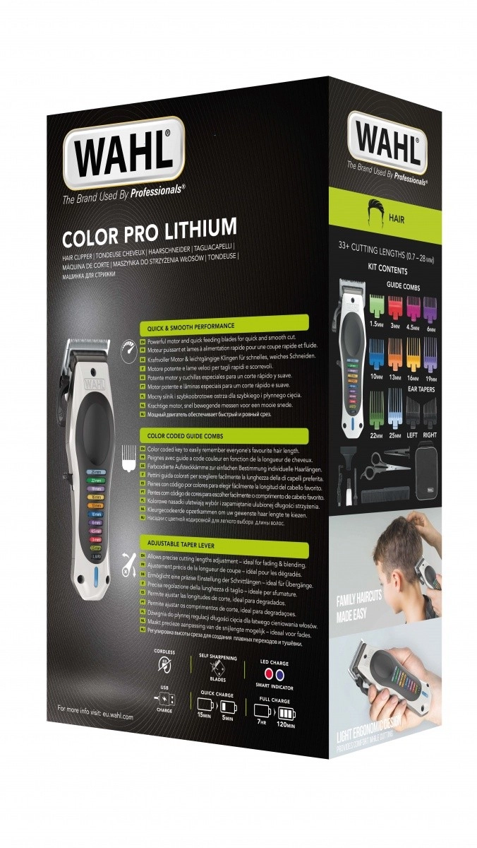 La tondeuse Color Pro Lithium offre un moteur puissant et des lames à grande vitesse qui garantissent des coupes rapides et nettes. Ne perdez plus de temps lors de la coupe de vos cheveux.