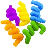 Les tubes sont disponibles en 7 couleurs : jaune, rose, violet, orange, bleu, bleu foncé et vert. Ils offrent une stimulation visuelle et tactile.