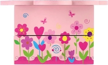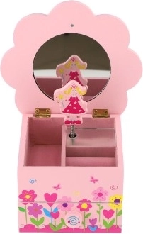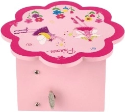 Charmante boîte à bijoux en bois de couleur rose qui enchantera toute petite amatrice de contes de fées. Le couvercle en forme de fleur dissimule un miroir et, à l’ouverture, le mécanisme musical se met en marche pour transformer chaque mise en beauté en rituel magique. L’intérieur compartimenté et le tiroir inférieur aident à garder de l’ordre parmi bagues, bracelets, perles et petits trésors.