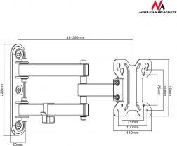 - Distance réglable par rapport au mur : 49 - 393 mm