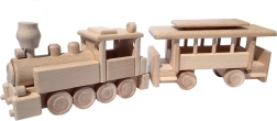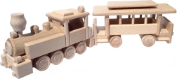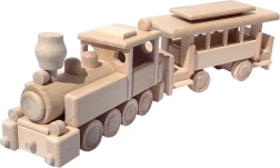 Nous présentons un petit train en bois naturel en hêtre de qualité, soigneusement façonné à la main. La surface est uniquement cirée et polie, sans traitements chimiques ni peintures, afin de conserver son aspect naturel. Le train possède des bords arrondis, des roues mobiles et convient parfaitement à un jeu sûr et créatif à la maison comme au bac à sable.