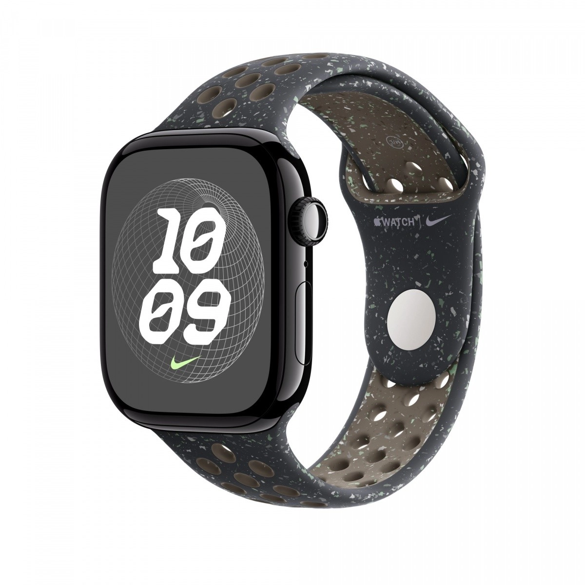 Le matériau est élégant, lisse et agréable au toucher. Le bracelet contient au minimum 30 % de fluorélastomère recyclé et chaque éclat contient au minimum 66 % de fluorélastomère recyclé. La fermeture présente une finition mate originale.
