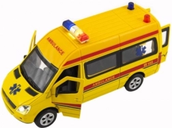 Ambulance – petite voiture métal‑plastique avec lumières et sons, 15 cm, à rétrofriction