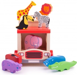 Camion en bois avec animaux de safari