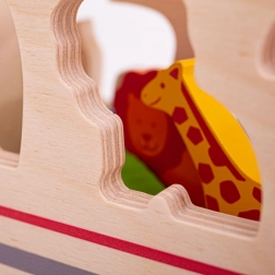 Ce jouet en bois coloré contient des animaux reconnaissables qui peuvent être chargés sur le camion à l'aide des ouvertures spéciales sur le toit et les côtés du véhicule. Les enfants peuvent trier les formes et apprendre sur les différents animaux, puis insérer chaque animal dans la bonne ouverture. Une fois que tous les animaux sont à leur place, les portes arrière du camion se ferment et ils peuvent partir pour une nouvelle aventure.
