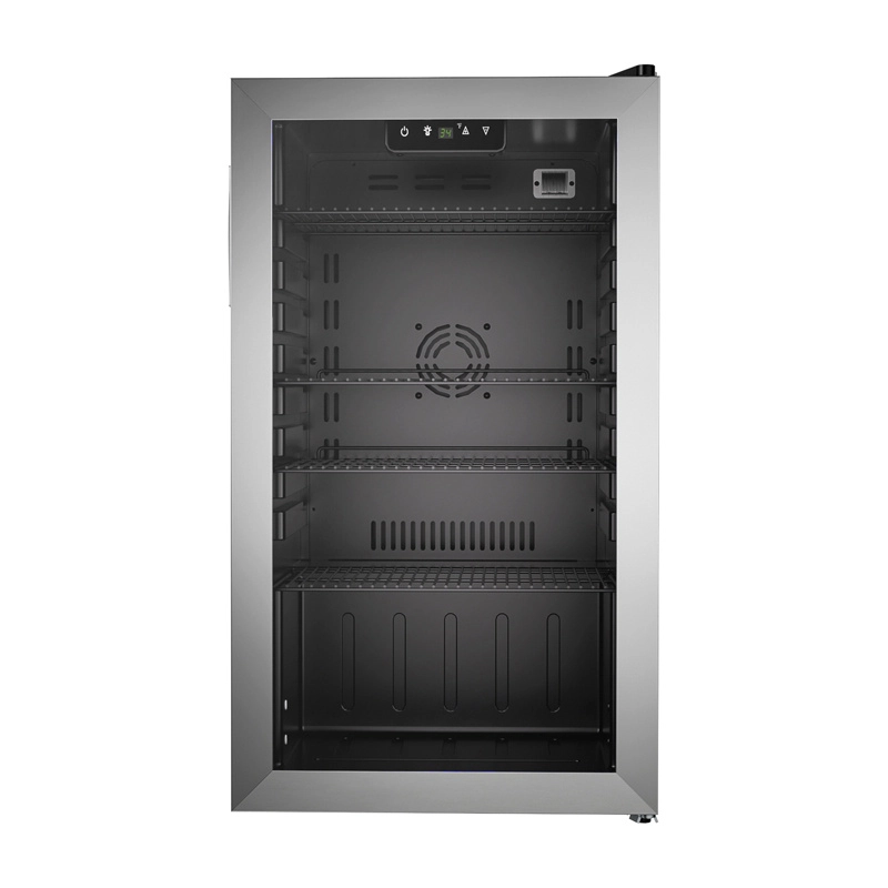 La façade en verre trempé de haute qualité avec couche Low-E permet un fonctionnement efficace avec une consommation d'énergie réduite. L'éclairage LED intérieur ajoute non seulement une touche élégante, mais facilite également la recherche de votre boisson préférée.