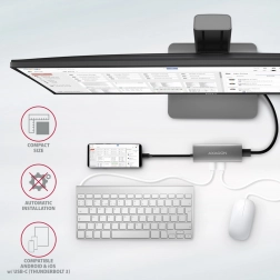 Le boîtier en aluminium élégant et fin ne se contente pas d’un excellent look, il assure aussi une grande résistance mécanique et un refroidissement passif. La surface texturée ne retient pas les empreintes. Idéal pour les ordinateurs portables dépourvus de ports USB-A et de sortie vidéo, il facilite la connexion des périphériques grâce aux fonctions Plug and Play et Hot Plug.