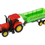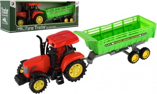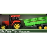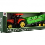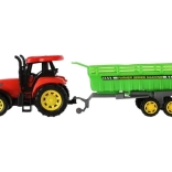 Tracteur en plastique coloré de 35 cm avec remorque à friction, jouet idéal pour les enfants dès 3 ans.