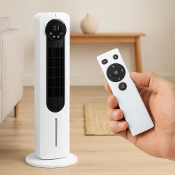 Nous présentons le ventilateur colonne LEAN, conçu pour offrir un maximum de confort pendant les journées chaudes grâce à la technologie de refroidissement par eau. Il suffit de verser de l’eau et d’ajouter de la glace pour un meilleur effet. La fonction ionisation purifie en plus l’air des allergènes et des micro-organismes.