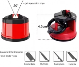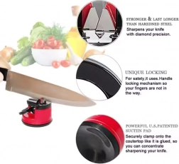Aiguiseur de couteaux et ciseaux avec ventouse et mécanisme de verrouillage à levier rouge