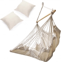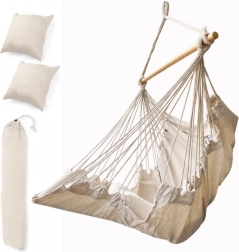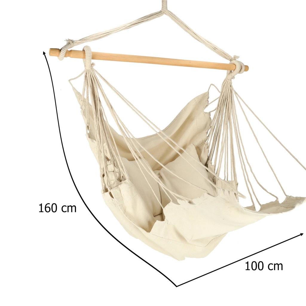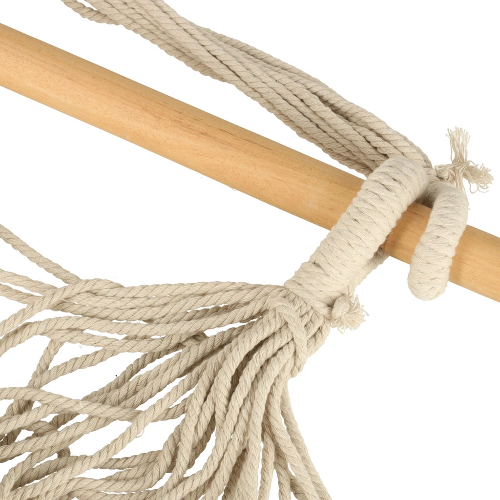 Ce mobilier suspendu convient au design bohème tout en pouvant être installé dans un jardin ou une maison de campagne. Le matériau est agréable au toucher et aide à évacuer le stress. Le package comprend un fauteuil, une barre en bois, des cordes suspendues et deux coussins confortables. Ajoutez une touche de sérénité et de confort à votre vie.