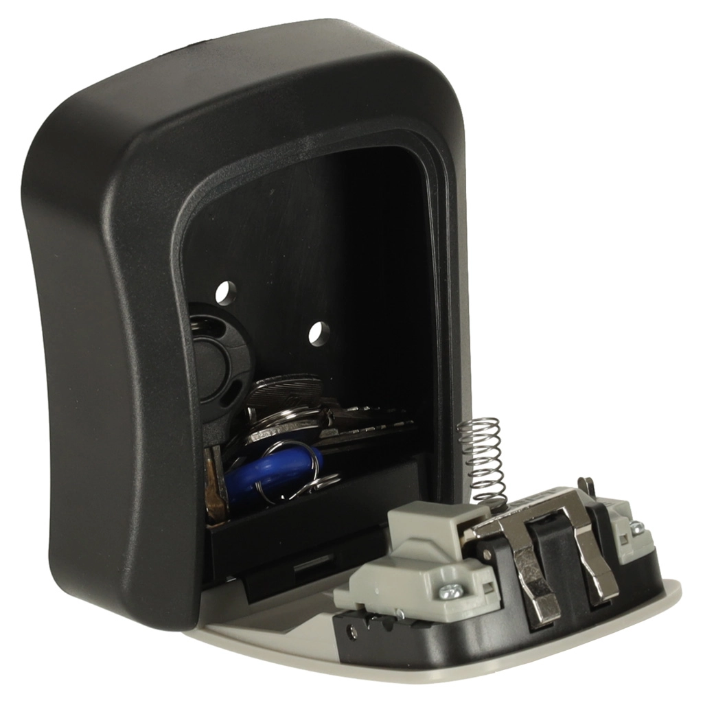 Sécurisé et pratique, coffre-fort à clés avec serrure à code, idéal pour le montage mural. Gardez vos clés en sécurité avec son corps en plastique robuste et sa fiable serrure à combinaison à 4 chiffres.