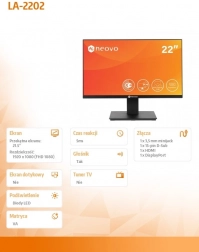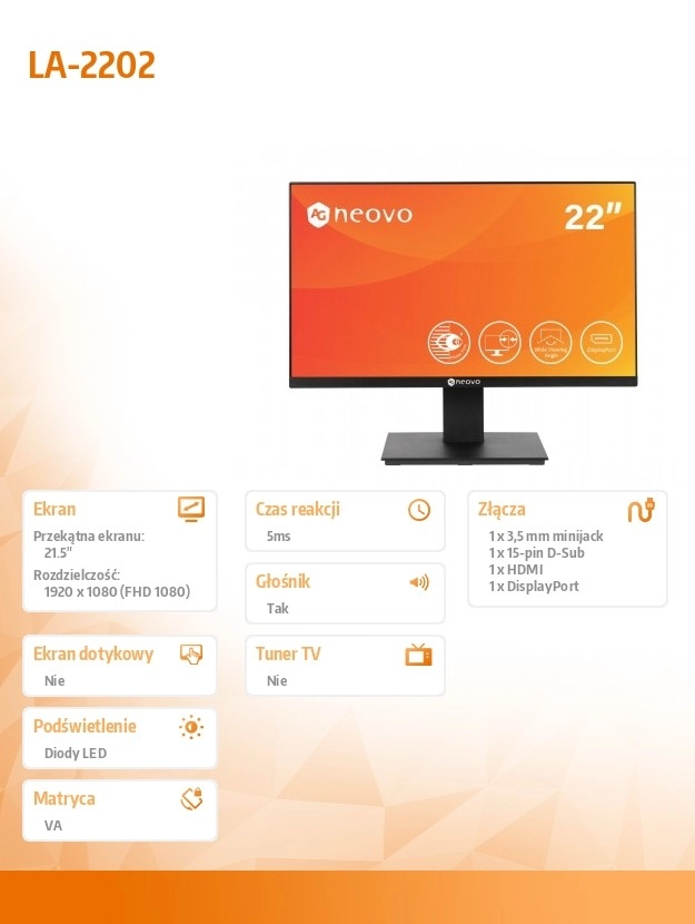 Moniteur 22 pouces idéal pour une utilisation bureautique et domestique avec connexions HDMI, DisplayPort et D-SUB.