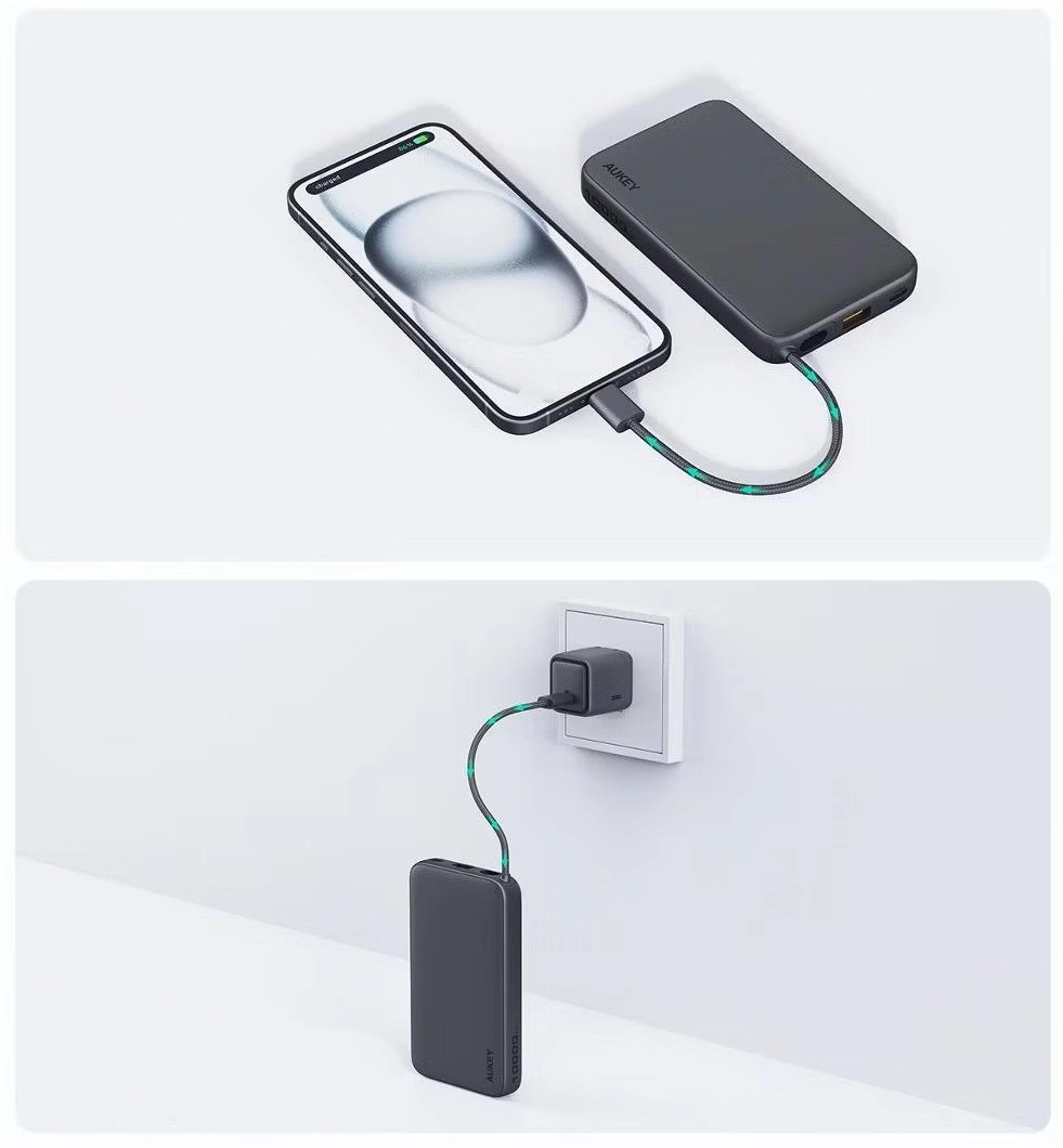 La batterie externe Aukey Spark Sling offre une capacité de 10000 mAh et une charge rapide jusqu’à 22,5 W, avec la possibilité de charger jusqu’à trois appareils simultanément.