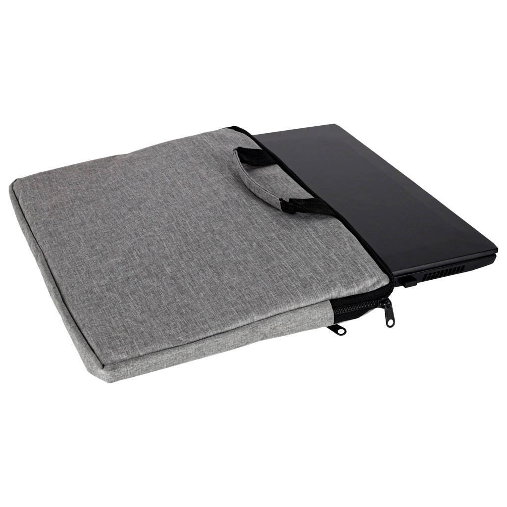 Sacoche grise stylée et fonctionnelle pour ordinateurs portables jusqu’à 15,6 pouces, offrant une excellente protection et un transport facile grâce à sa construction légère et à son tissu Oxford résistant.