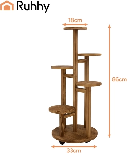 Apportez ordre et verdure à votre intérieur avec la structure légère, mobile et pratique du support RUHHY. Les roulettes pivotantes avec blocage permettent des déplacements fluides sans rayer le sol, tandis que les 6 niveaux offrent de la place pour des pots de tailles variées dans une composition harmonieuse. Le bois de pin naturel est esthétique, facile à nettoyer et résistant à l’humidité – parfait en intérieur comme en extérieur.