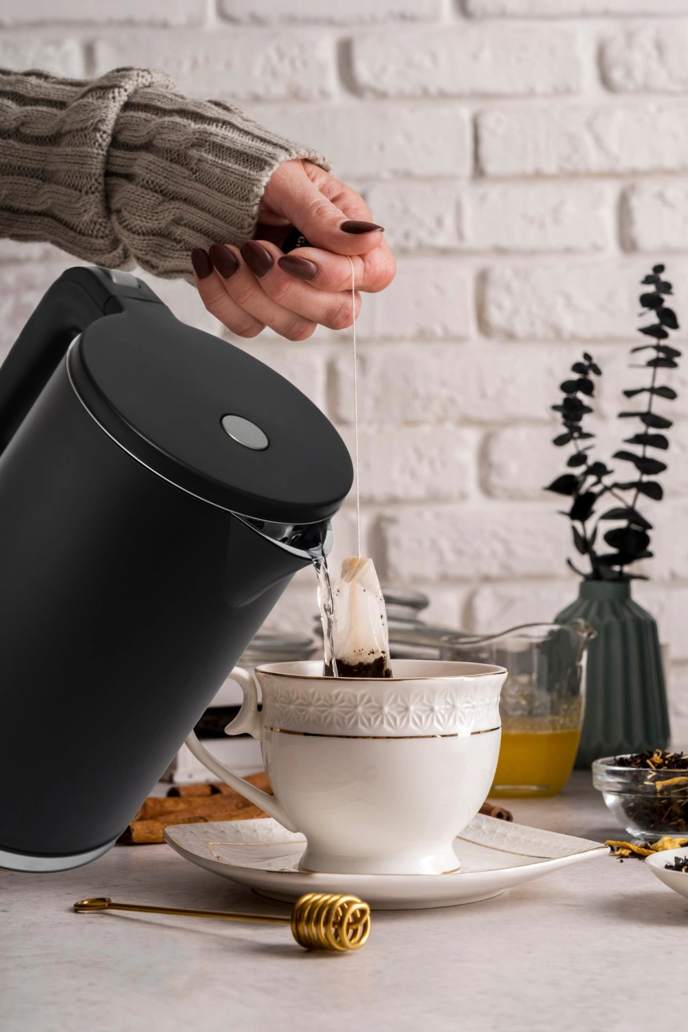 La partie intérieure en acier inoxydable résiste à la corrosion et se nettoie facilement, tandis que le boîtier en polypropylène avec double paroi reste plus frais au toucher et isole mieux la chaleur. L’arrêt automatique à ébullition et la protection contre la chauffe à sec augmentent la sécurité au quotidien.