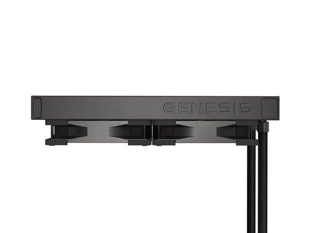 Le bloc à profil bas avec pompe n’empiète pas sur la zone VRM, et le logo GENESIS peut être pivoté à 360° pour une orientation parfaite. Les tuyaux tressés et robustes permettent une rotation jusqu’à 180°, ce qui simplifie le routage dans les boîtiers plus compacts.