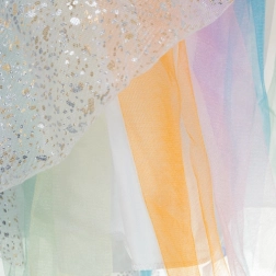 - Design scintillant : tulle avec étoiles dorées et élégantes ailes dorées.