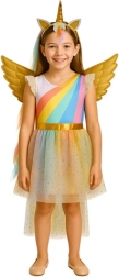 Ce costume de licorne enchanteur ravira toutes les petites amatrices de fantaisie. L’ensemble contient tout le nécessaire pour un déguisement immédiat – une robe en tulle scintillant, des ailes dorées avec élastiques et un serre‑tête avec corne et oreilles. Grâce à son utilisation polyvalente, c’est un excellent choix toute l’année – des spectacles scolaires aux fêtes à thème.