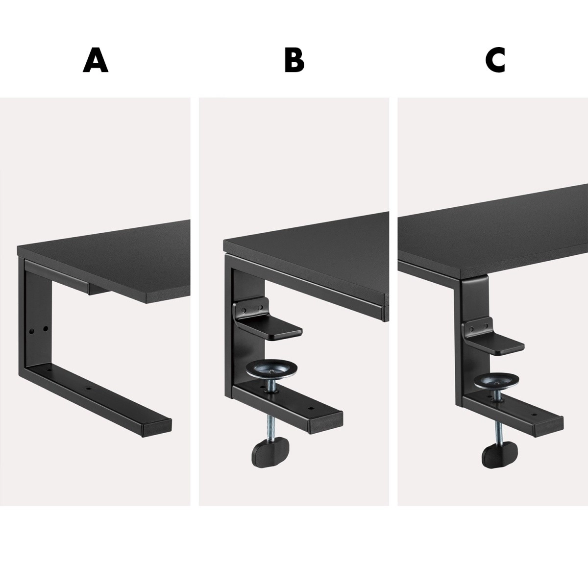 - Sans perçage : serre-joints à vis pour une fixation rapide sur la plupart des bureaux.