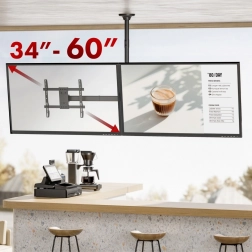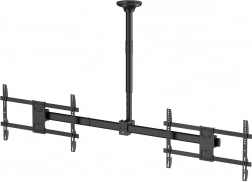 Une longue barre transversale et une paire de supports VESA permettent l’installation sûre de deux TV sur une même ligne. Idéal pour les menu boards, les systèmes d’information et les présentations.