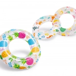 Des imprimés attractifs avec des poissons, des fruits ou des inscriptions rendent la baignade ludique et améliorent la visibilité de la bouée dans l’eau.