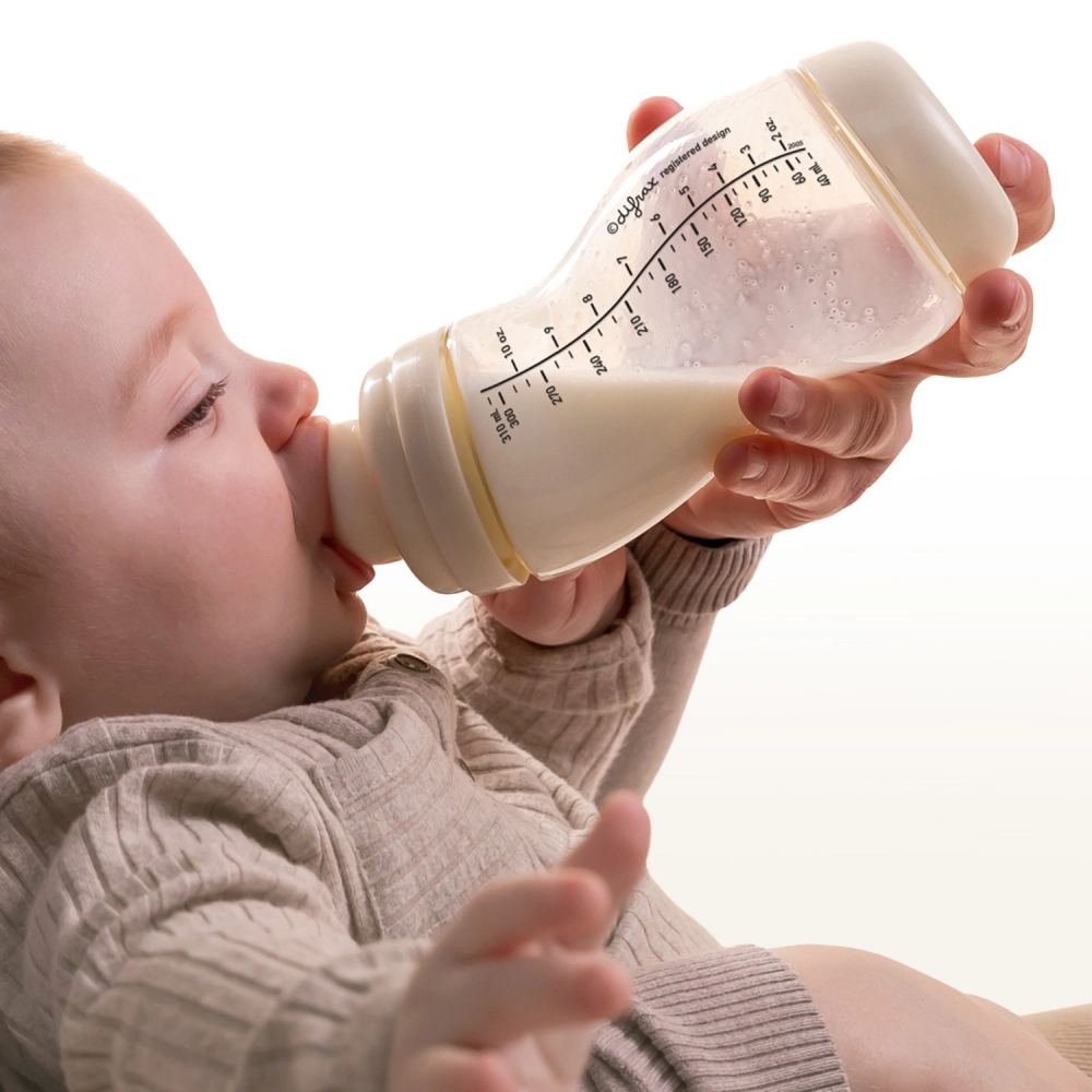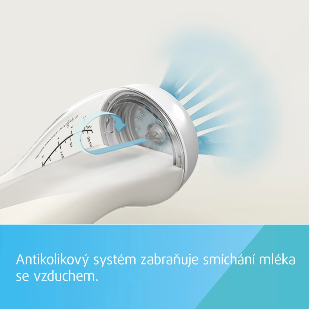 La valve spéciale libère l'air du biberon et maintient un débit de lait constant afin que bébé boive en continu sans avaler d'air.
