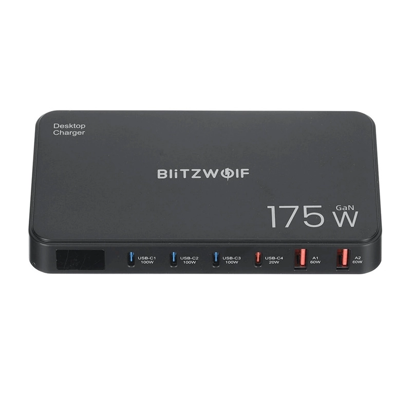 Chargeur de bureau GaN BlitzWolf 175 W, 4× USB‑C + 2× USB‑A, 6‑en‑1