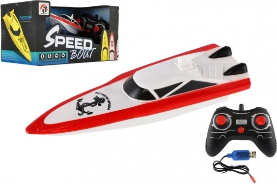 Bateau à moteur / bateau RC en plastique 19cm avec batterie+pack de recharge+USB 2,4Ghz dans une boîte 26x13x15cm