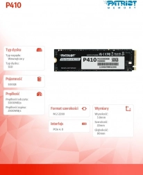 Le Patriot P410 est un SSD NVMe PCIe 4.0 au format M.2 2280, conçu pour une réactivité système fluide et des temps de chargement réduits pour les jeux et les logiciels. Grâce à une gestion thermique améliorée et à une surface thermique en graphène, il conserve des performances stables même en charge prolongée.