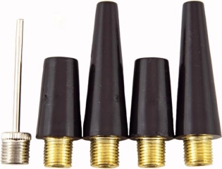 Un jeu d’adaptateurs comprenant une valve à aiguille et des buses coniques couvre le gonflage des ballons, jouets et matelas – il suffit de visser et de commencer.