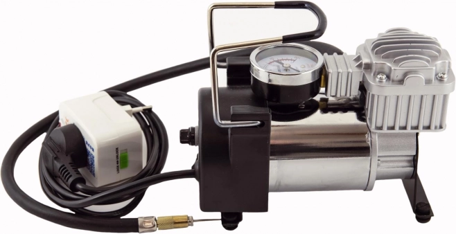 Compresseur électrique compact et puissant pour le gonflage rapide des pneus, ballons et articles gonflables. Il offre une pression maximale de 150 PSI, un débit de 35 l/min et un manomètre intégré pour un contrôle précis de la pression. Le coffret comprend différentes embouts, dont une aiguille, ainsi qu’un adaptateur secteur AC 220–230 V pour une utilisation pratique à la maison comme à l’atelier.
