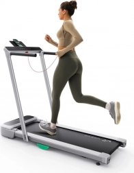 Adaptez l’entraînement à vos besoins – de la marche 1–6 km/h jusqu’à la course jusqu’à 13,4 km/h. Le système SwiftFold™ 2-en-1 permet un pliage éclair et son châssis fin (env. 13,5 cm une fois plié) se glisse facilement sous un canapé ou un lit. L’application SmartCoach avec IA propose des parcours virtuels, des programmes MIIT/HIIT/LIIT, des classements et des défis pour une motivation durable.