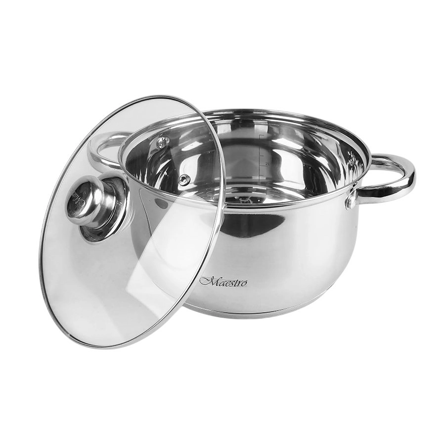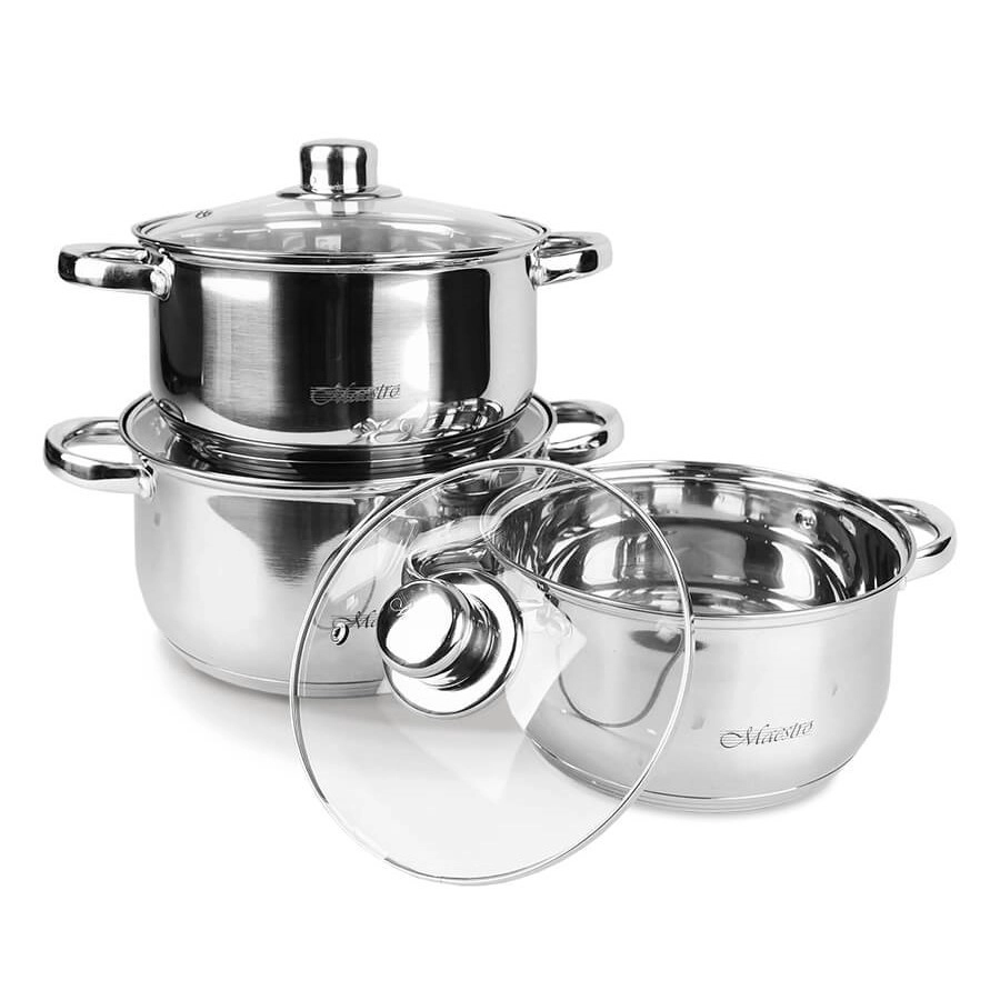 Avec l’ensemble de 6 pièces Maestro, vous obtenez des ustensiles fiables pour un usage quotidien. Les casseroles en acier inoxydable durable sont faciles à entretenir, les couvercles en verre avec orifice d’évacuation de vapeur permettent de contrôler la cuisson, et le fond thermo-accumulateur multicouche économise de l’énergie grâce à une répartition uniforme de la chaleur.