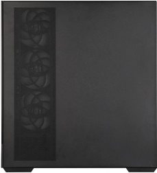 Le boîtier est optimisé pour un flux d’air maximal grâce à l’admission latérale et à une disposition intelligente des ventilateurs. Les ventilateurs AF120 minimisent les vibrations, réduisent le bruit aérodynamique et augmentent l’efficacité du flux. Le panneau latéral amovible facilite le montage et l’entretien, tandis que les filtres à poussière magnétiques en haut et en bas limitent les dépôts de poussière et favorisent une dissipation thermique rapide.