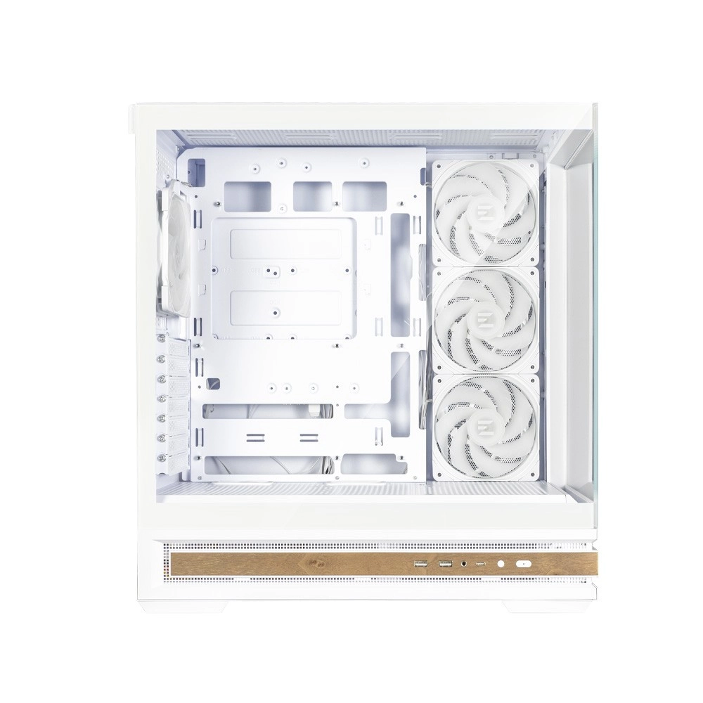 Le boîtier PC P40 NAMU blanc et élégant, avec vue panoramique grâce à deux panneaux sans cadre en verre trempé, offre une finition premium, un rétroéclairage ARGB et un flux d’air maximal. Grâce à un espace de gestion des câbles bien pensé et à des filtres anti-poussière magnétiques, il assure une esthétique épurée, une maintenance aisée et un refroidissement excellent pour des configurations performantes.