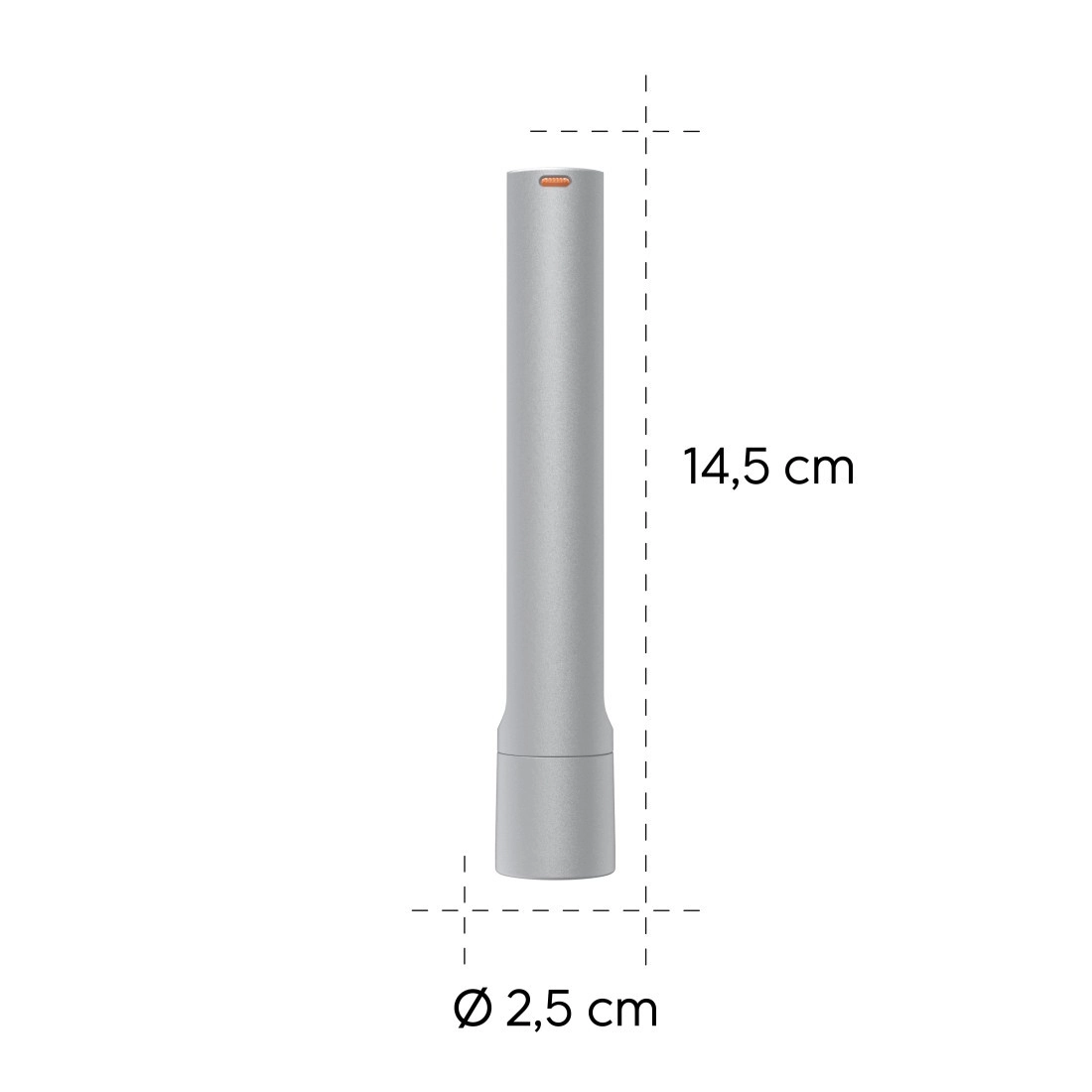 Corps métallique fin avec dragonne, agréable en main et facile à transporter – toujours prête à portée de main.