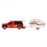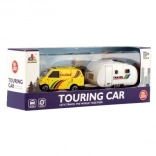 La voiture avec mini caravane est soigneusement détaillée pour éveiller l’intérêt pour le voyage et l’aventure.