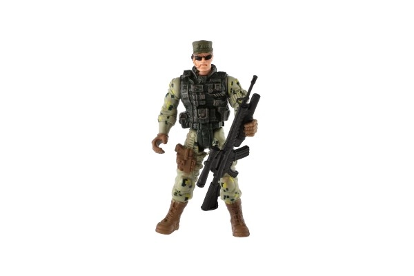 Figurine d’action militaire avec arme 10 cm dans boîte en plastique