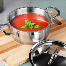 Casserole pratique en acier inoxydable avec couvercle, d’une capacité de 1,2 l et d’un diamètre de 16 cm, idéale pour la cuisson et la cuisson à l’étouffée au quotidien. Grâce au fond akutermique multicouche, elle répartit la chaleur de façon uniforme, convient à tous les types de plaques, y compris l’induction, et permet une cuisson économique avec un minimum de matières grasses. Sa construction robuste en acier inoxydable 18/10, ses poignées confortables et son entretien facile au lave-vaisselle en font un complément fiable pour toute cuisine.
