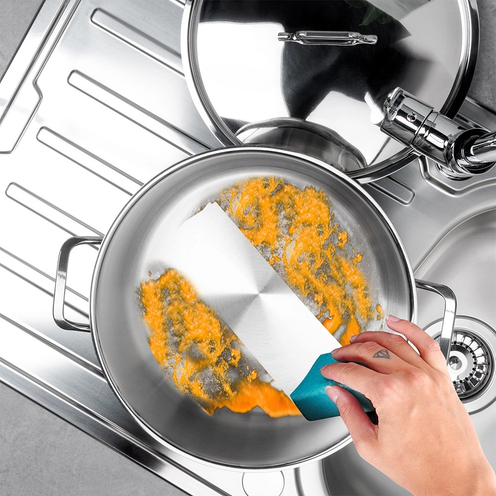 Le fond multicouche accumule efficacement la chaleur et la distribue de manière uniforme. La cuisson est plus rapide, plus économique et offre des résultats parfaits sur tous les types de plaques.